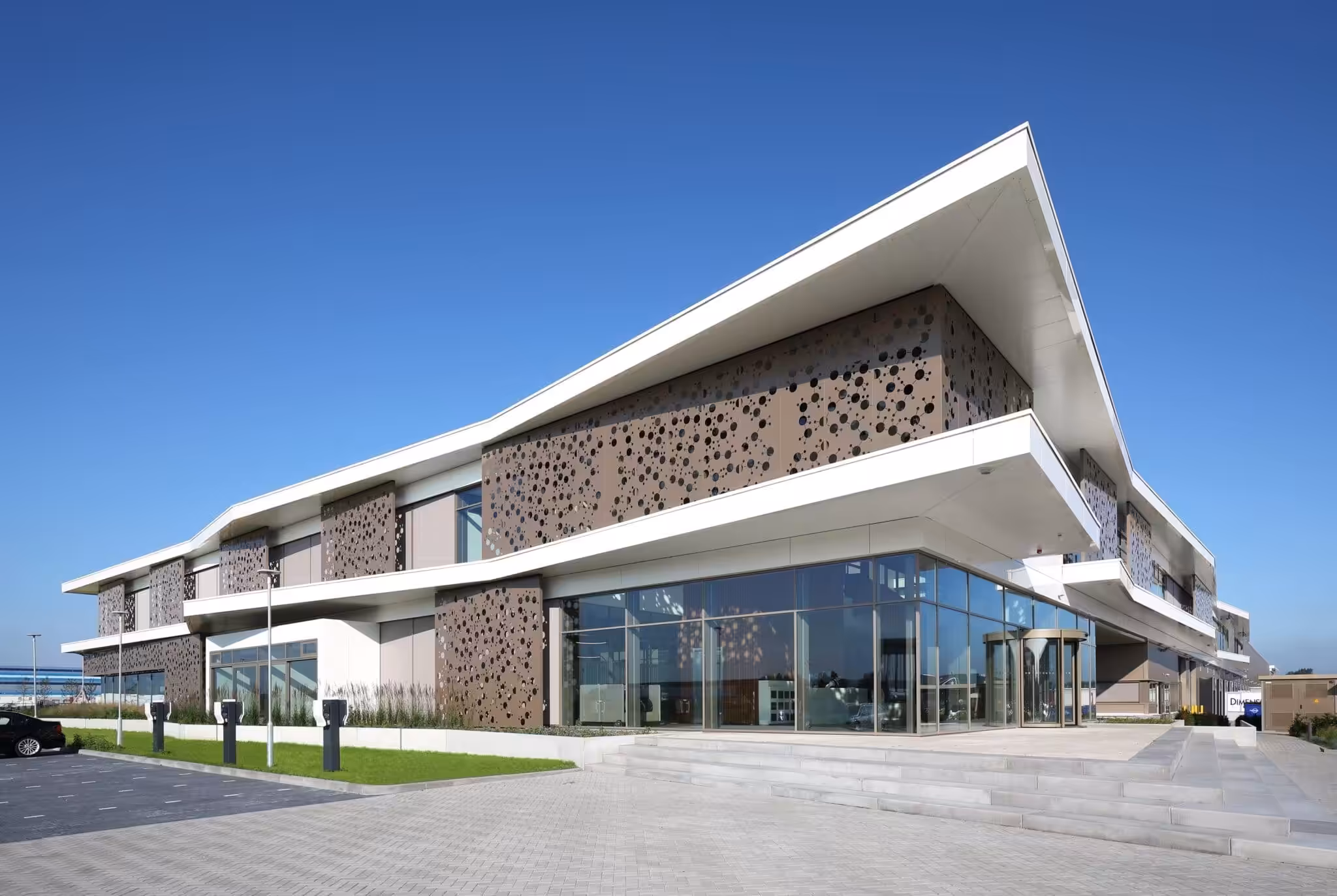 Voor het bedrijfsgebouw van Dimensio Verpakkingen in Almere hebben wij het certificeringstraject voor BREEAM-NL In-Use V6.0.0 begeleid. Dit moderne en duurzame gebouw van ruim 34.000 m² — met onder meer magazijnruimtes, kantoren, een showroom en uitgebreide faciliteiten voor medewerkers — combineert hoogwaardige bedrijfsvoorzieningen met een sterke focus op welzijn en duurzaamheid.